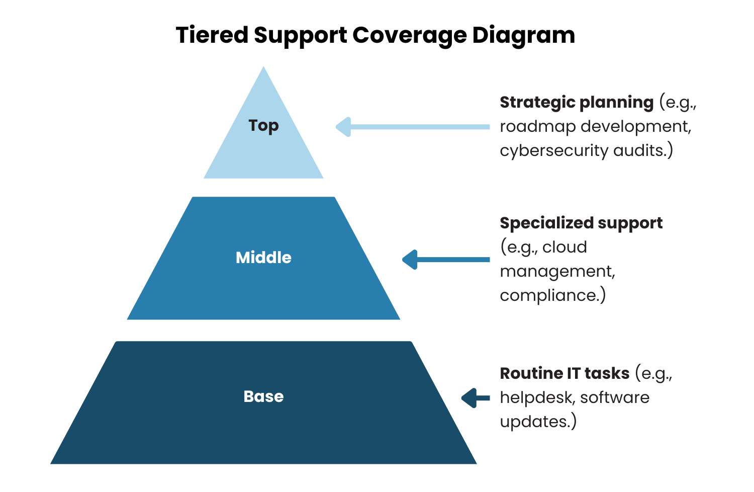 Strategic advantage: You benefit from industry best practices, emerging tech, and compliance expertise on demand without the need to hire, train, and manage an entire IT department.